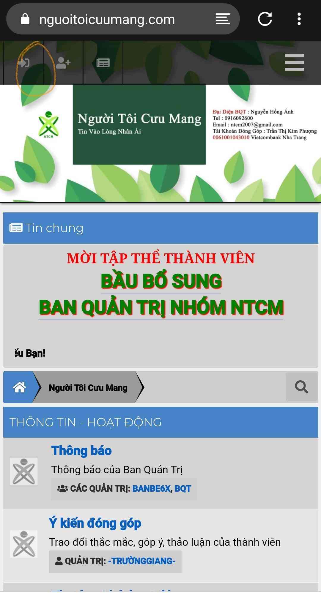 Bước 1:  Đăng nhập vào trang web: www.nguoitoicuumang.com. Nhấn vào biểu tượng cửa sổ ở phía trên cùng bên trái.