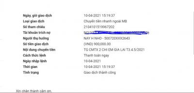 TG đã chuyển 900 nghìn CMTX hai chị em trong 03 tháng (Tháng 3 - 4 - 5/2021)