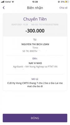 Loannguyen đã trung chuyển 300,000đ tiền CMTX tháng 6 của CLB Hy Vọng đến Kiều Nay nhờ chuyển giúp đến 2 cháu nhé. Cảm ơn bạn !