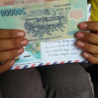Letuantu sẽ chuyển tiền cho @Kiều Nay, nhờ @Kiều Nay trao giúp nhé.
