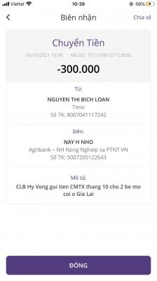 Loannguyen đã trung chuyển 300,000đ tiền CMTX tháng 10 của CLB Hy Vọng đến Kiều Nay nhờ chuyển giúp đến 2 cháu nhé. Cảm ơn bạn !