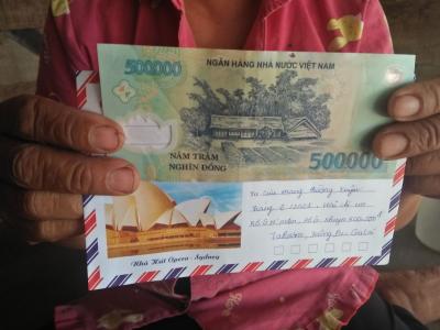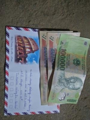 Chào cả nhà ! Vì dịch  bị hoãn lại nên e trao 2 tháng cùng 1 lúc ,tháng 12 và tháng 1,mỗi tháng 300k .Lúc e qua là chủ nhật tuần bữa 2 chị em đi lễ nên e trao cho Bà của 2 cháu ạ..Sau đây là hình ảnh e trao tận tay Bà của 2 cháu ạ.Cám Cá cả nhà nhiều !