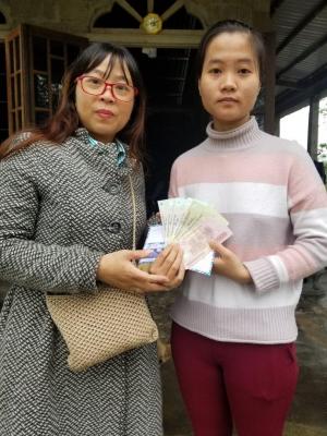 Nhóm Huế đã trao CMKTX hỗ trợ học phí cho em Nguyễn Thị Ngọc Quý. Vì em Quý đi học nên nhóm đã trao cho chị gái của em.