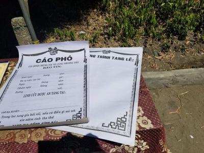 Cáo phó, chương trình tang lễ của em không ai viết giúp, người ta thương tình cho ba mẹ em mua thiếu cho em cái áo quan. Không kèn, không trống, không hoa, không gì cả, ....