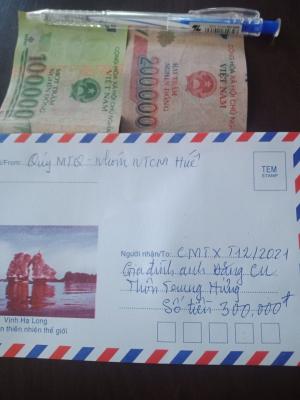 Hôm nay (13/10/2021), mình đã đến trao số tiền 300.000đ là quà cưu mang mà mạnh thường quân gửi CMTX tháng 10/2021 gia đình anh Đặng Cu gặp khó khăn ở thôn Trung Hưng, xã Vinh Hưng, huyện Phú Lộc, tỉnh TT.Huế.