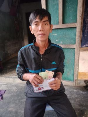 Đến nhà trao tiền, bản thân được biết suốt thời gian bị phong tỏa, gia đình anh không thể đi bủa lưới được nên cuộc sống rất khó khăn. Bên cạnh, hiện nay đã vào năm học mới, các em học sinh ở xã Vinh Hưng phải học online do thực hiện chỉ thị 15 và 16 (hiện vẫn đang học online tuần thứ 3), rồi mua sách vở, đồ dùng học tập cho các cháu…nên gia đình anh càng khó khăn hơn.