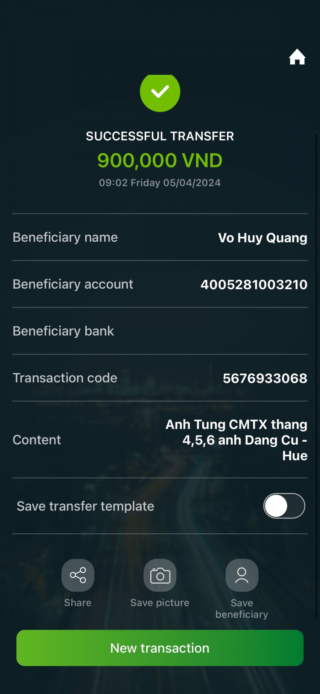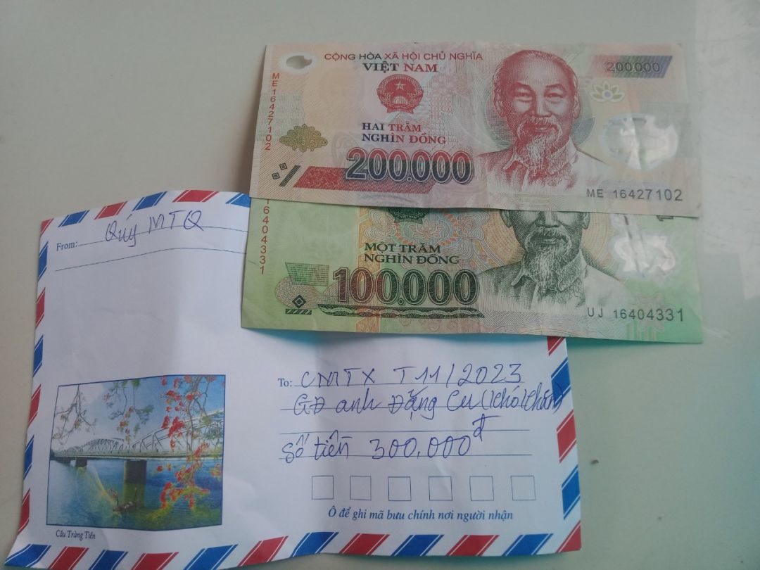 Hôm nay 24/7/2024, được sự cưu mang tiếp tục từ quý MTQ trong tháng 7 và 8, Quang đã trao quà CMTX tháng 07/2024 đến với gia đình anh Đặng Cu (khó khăn). Quà của Quý MTQ là tiền mặt 300.000đ. Nhận được quà, anh Đặng Cu rất cảm động và gửi lời cảm ơn chân thành đến Quý mạnh thường quân ạ!