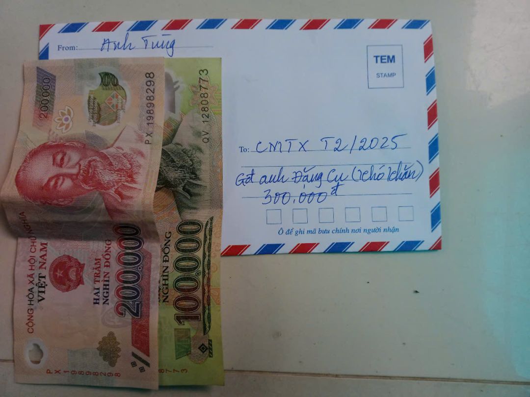 Anh Tùng gởi 600.000đ CMTX tháng 5,6 đến gia đình anh Đặng Cu.