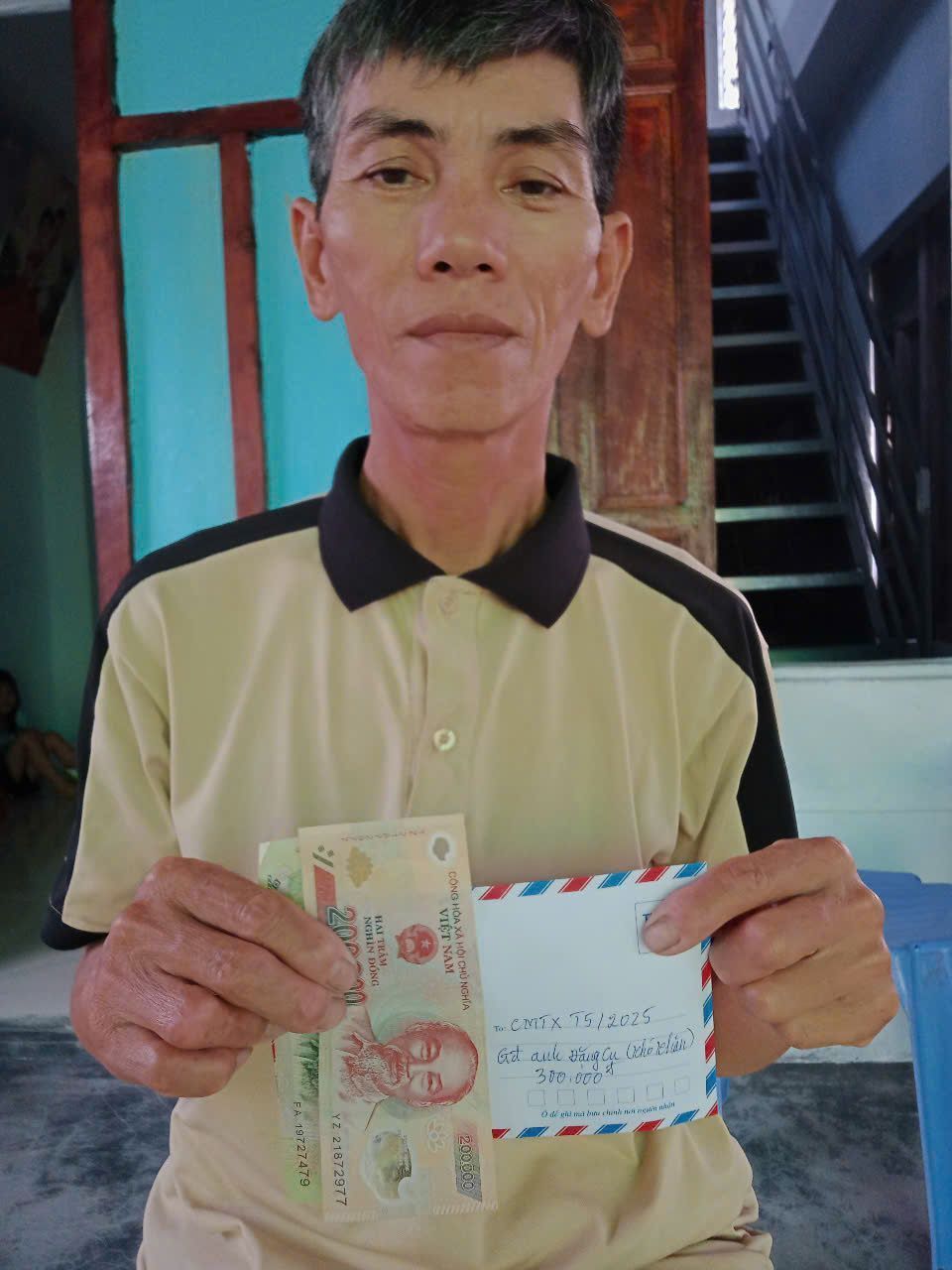 Được sự cưu mang tiếp theo trong tháng 5 và 6 năm 2025, Hôm nay 10/5/2025, Quang đã trao quà CMTX tháng 05/2025 đến với gia đình anh Đặng Cu (khó khăn). Quà của Quý MTQ là tiền mặt 300.000đ. Nhận được quà, anh Đặng Cu rất cảm động và gửi lời cảm ơn rất nhiều đến với Quý mạnh thường quân ạ!