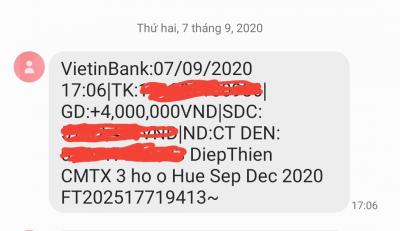 DiepThien đã chuyển đủ số tiền CMTX cho bác Hồ Trai từ T9-T12/2020 tới tài khoản của bạn.
