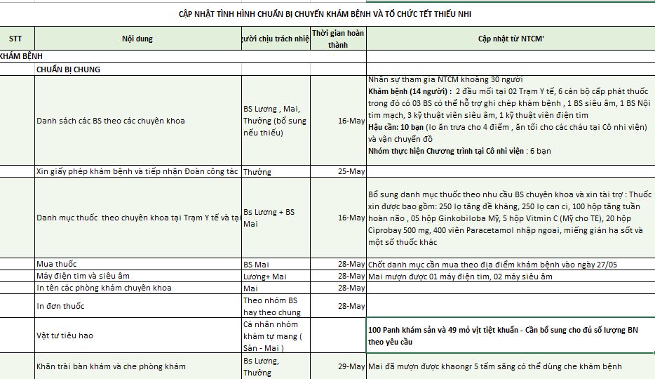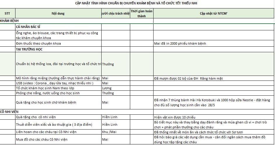 Tổng tiền thực hiện chương trình gồm chi phí thuốc men, dụng cụ khám bệnh và tổ chức tết thiếu nhi:
