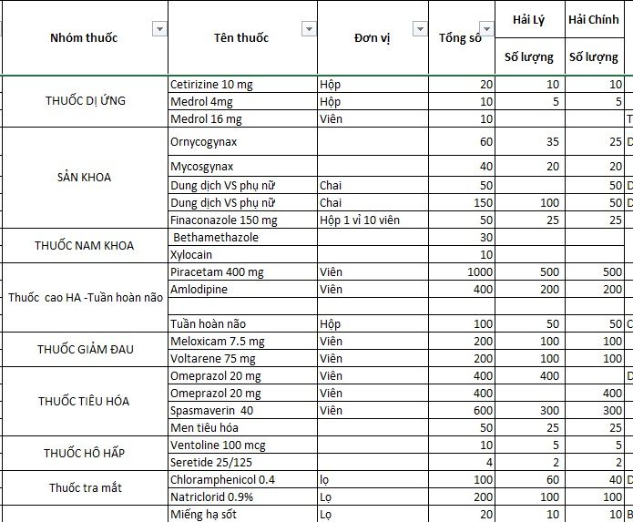 1. Mua thuốc và vật tư tiêu hao phục vụ công tác khám chữa bệnh: 30.500 K