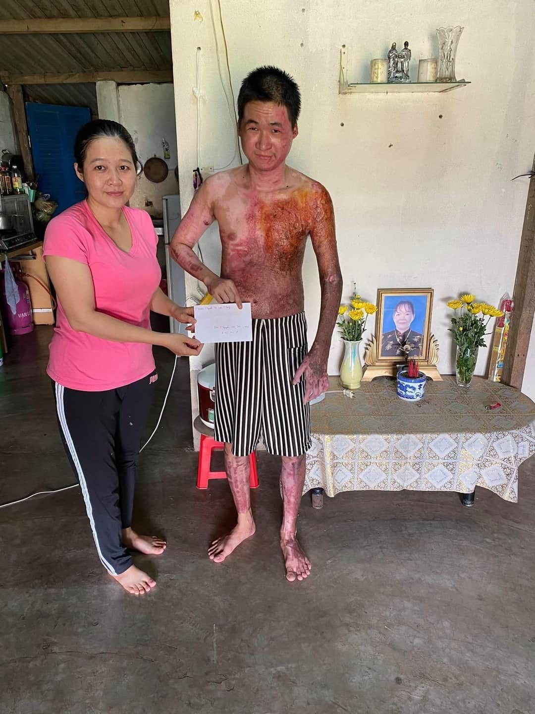 Em Tiến, 20t, và mẹ em bị người ta tạt xăng vào phòng trọ. Mẹ em đã chết. Em bị phỏng toàn thân, biến dạng, lở loét đau nhức khắp người. Em lại bị bệnh tim, sức khỏe yếu. Hiện dì ruột đang chăm sóc em. Tất cả giấy tờ chữa trị, công an đang tạm giữ để điều tra vụ án. Người gây án đang bị giam. Chi phí chữa trị ở BV (theo dì em nói): 194tr. MTQ giúp 154tr, số còn lại là gia đình người thân giúp. Vụ án chưa được xét xử, chưa có sự bồi thường. Và hiện tại, em Tiến không nhận được đồng nào + lời thăm hỏi của gia đình người gây án. Người gây án có tình cảm với mẹ em, nhưng mẹ em từ chối nên người ấy trả thù (theo ý lời kể của em Tiến + dì ruột).