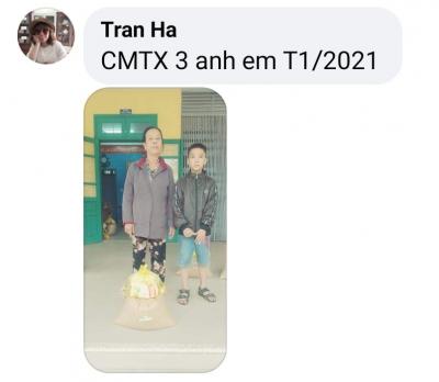 Nhóm Huế cập nhật hình ảnh trao CMTX Tháng 1, Tháng 2/2021 và trao quà Tết đến 3 anh em.