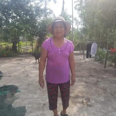 Bà ở nhà trồng rau. Nuôi 3 cháu.