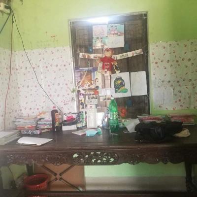 Em Quang ở với Bà nội và 2 chị gái song sinh. Vì 2 chị gái của em học buổi chiều nên không chụp ảnh được.