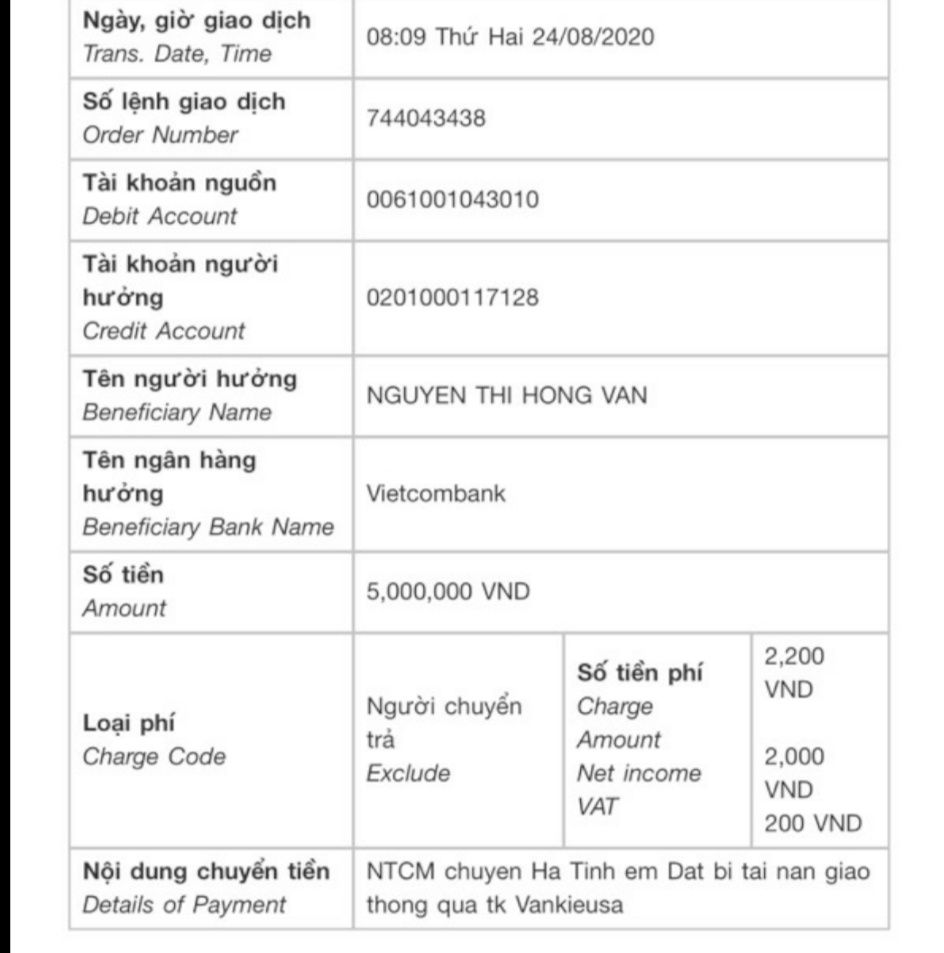 24/8/2020 VKS đã nhận 5.000.000đ( năm triệu đông) CMKTX