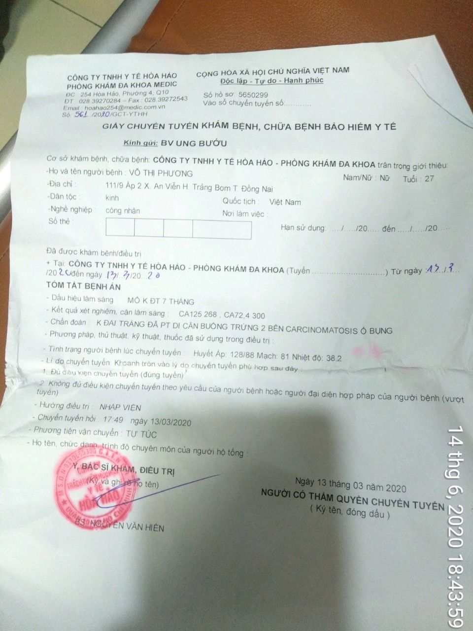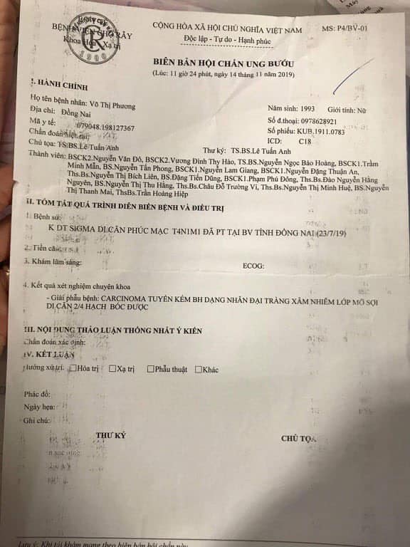 Xin lỗi cả nhà vì chưa cập nhật cụ thể. Em Phương chuyển tới BV ĐK Tỉnh Đồng Nai cũng gần 1 tháng và điều trị tại khu B là khu dịch vụ của bệnh viện, về kinh phí mỗi ngày hết khoảng 600k nằm tại viện chưa kể các chi phí như thuốc hay xét nghiệm khác, chỗ làm ở sân gôn thì anh em bạn cũng có giúp 1 ít. Trước mắt nhóm XM đề xuất khoảng 2 triệu nếu cả nhà giúp nhiều hơn để hỗ trợ viện phí cho em Phương thì tốt để em lo điều trị. Sau khi hỏi Quyết gần 1 tháng nay nằm viện thì tình hình của Phương ra sao. Quyết nói là cũng đỡ mệt nhiều so với trước và Quyết còn nói là bác sỹ nói điều trị khoảng 1 hay 3 tháng tại bệnh viện.