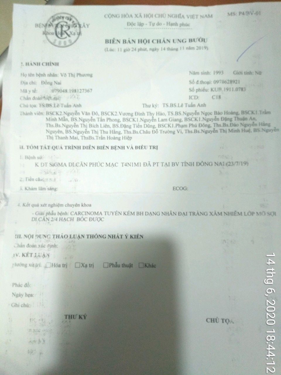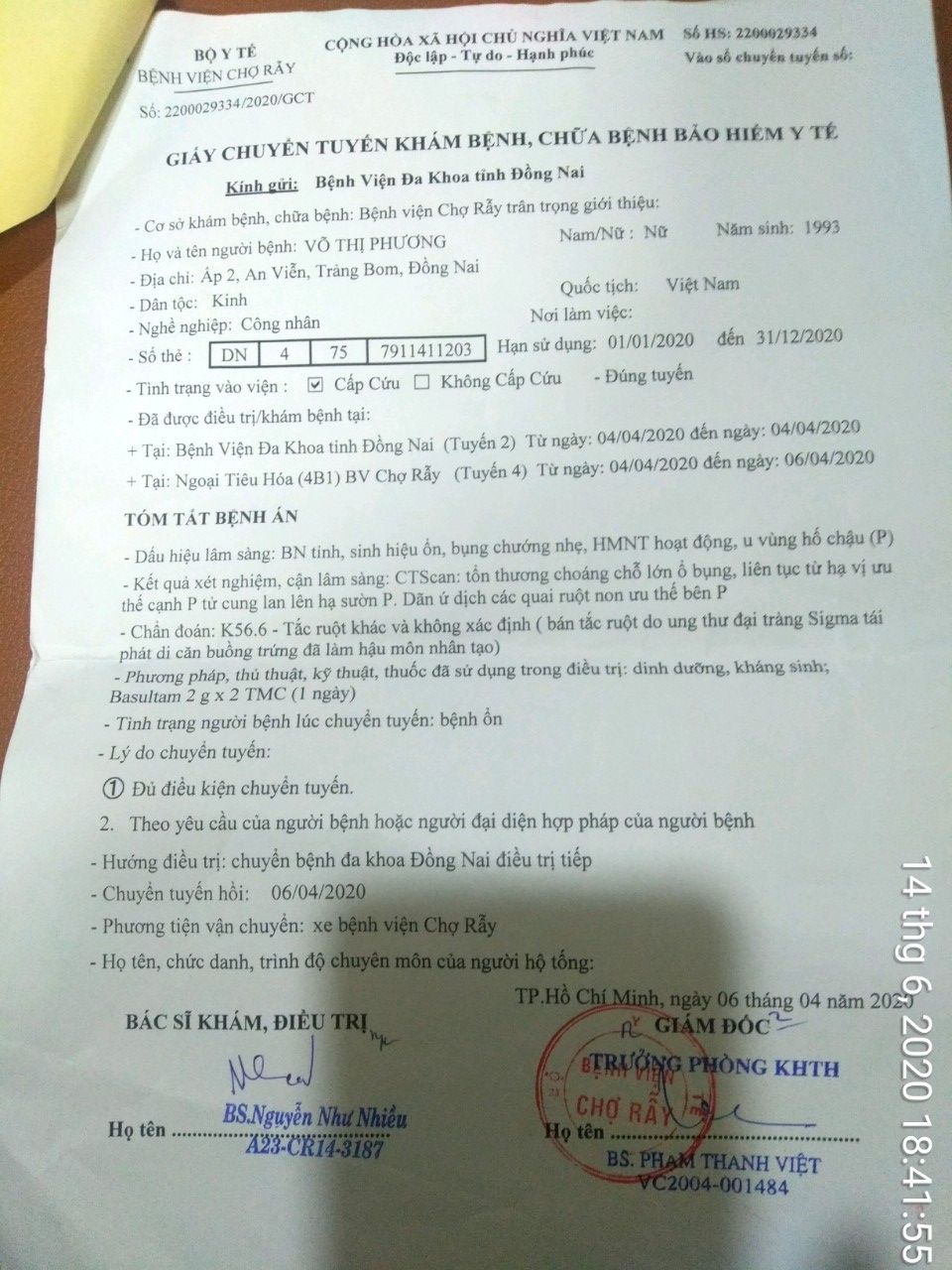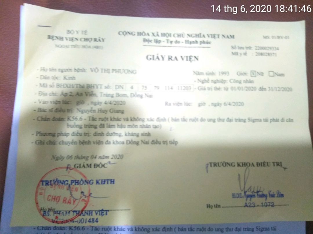 Xin lỗi cả nhà vì chưa cập nhật cụ thể. Em Phương chuyển tới BV ĐK Tỉnh Đồng Nai cũng gần 1 tháng và điều trị tại khu B là khu dịch vụ của bệnh viện, về kinh phí mỗi ngày hết khoảng 600k nằm tại viện chưa kể các chi phí như thuốc hay xét nghiệm khác, chỗ làm ở sân gôn thì anh em bạn cũng có giúp 1 ít. Trước mắt nhóm XM đề xuất khoảng 2 triệu nếu cả nhà giúp nhiều hơn để hỗ trợ viện phí cho em Phương thì tốt để em lo điều trị. Sau khi hỏi Quyết gần 1 tháng nay nằm viện thì tình hình của Phương ra sao. Quyết nói là cũng đỡ mệt nhiều so với trước và Quyết còn nói là bác sỹ nói điều trị khoảng 1 hay 3 tháng tại bệnh viện.