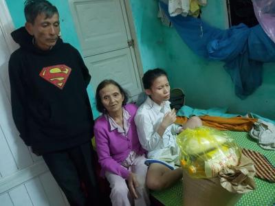 Hôm nay em đã đi trao phần quà CMKTX cho chú Tâm , em của dì Thơm bị đau nằm viện rồi ạ. Đợt này bệnh viện đang cho chú về nhà nghỉ ít bữa.
