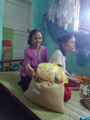 Hôm nay em đã đi trao phần quà CMTX tháng 01/2021 đến hộ dì Thơm rồi ạ.