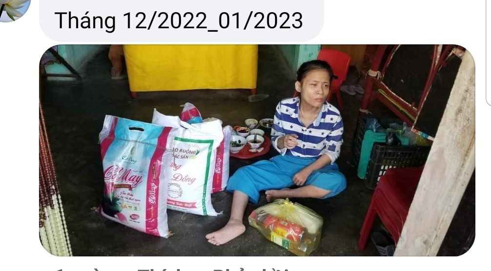 Em đã trao phần quà CMTX tháng 11& 12/2021 đến hộ dì Thơm rồi ạ.