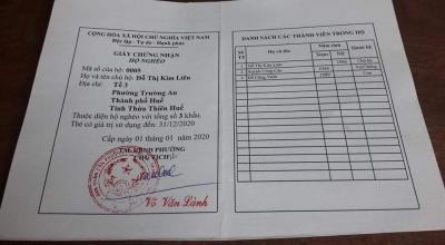 Chồng dì Liên là Huỳnh Công Cáo _ Sn1944. Sức khỏe yếu, đi không được vững, đi lui tới trong nhà cần phải có cây gậy, một mắt bị mờ không thấy rõ.