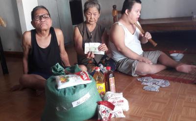 Chồng dì Liên là Huỳnh Công Cáo _ Sn1944. Sức khỏe yếu, đi không được vững, đi lui tới trong nhà cần phải có cây gậy, một mắt bị mờ không thấy rõ.