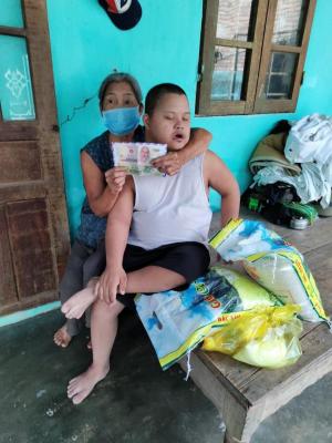 Hôm nay em đã đi trao phần quà CMTX tháng 8 và 9/2021 đến hộ bà Liên rồi ạ.