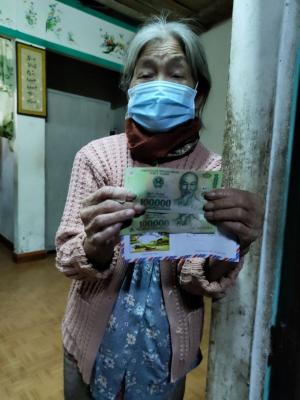 Hôm nay em đã đi trao phần quà Tết( 200.000đ)  đến hộ bà Liên rồi ạ.