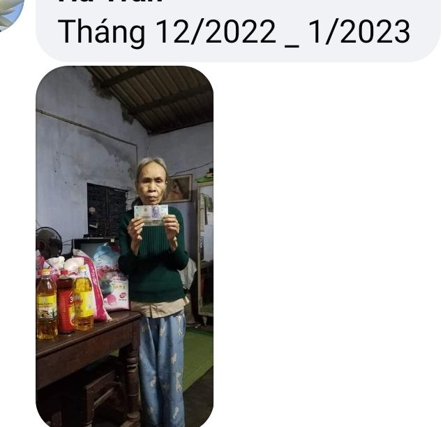 Hôm nay em đã đi trao phần quà CMTX tháng 01/2022 đến hộ dì Thu rồi ạ.