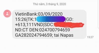 Mình chuyển tiền CMTX tháng 9, cám ơn mọi người.