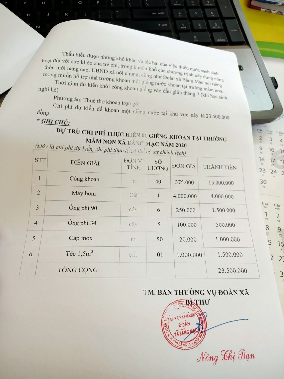 Chúng em rất hy vọng nhận được sự hỗ trợ kinh phí từ các cô, chú, anh, chị ạ. Kinh phí dự kiến cho toàn bộ việc khoan giếng là 23.500.000đ. Hiện tại chúng em đã gây quỹ và vận động được 10.000.000đ ạ. Ngày 17/7 này chúng em sẽ đến địa phương để thực hiện chương trình ạ.