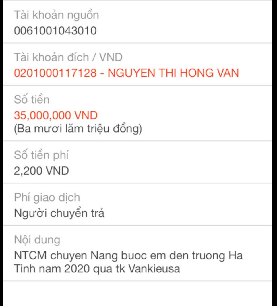@Thocon : Em xuất quỹ chuyển tới Vânkiêusa 35,000,000đ để các bạn khu vực Hà Tĩnh chuẩn bị hàng hóa thực hiện chương trình dùm nhé.