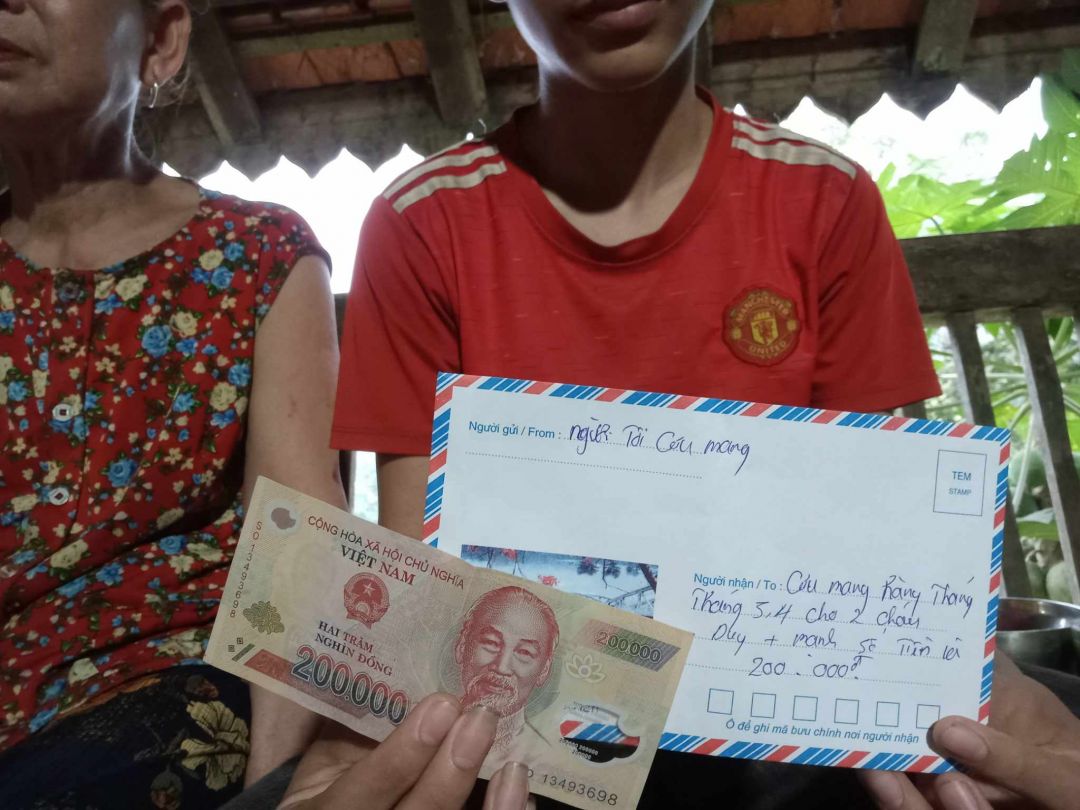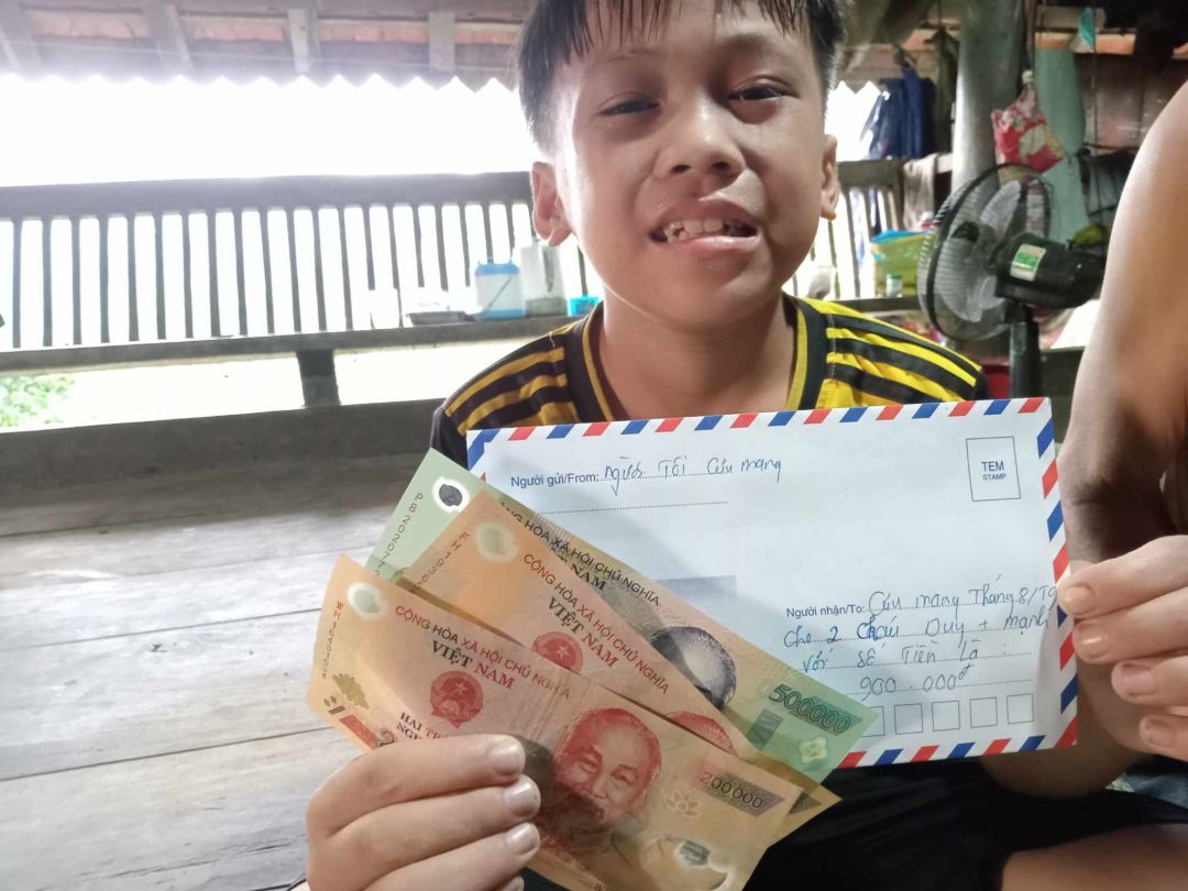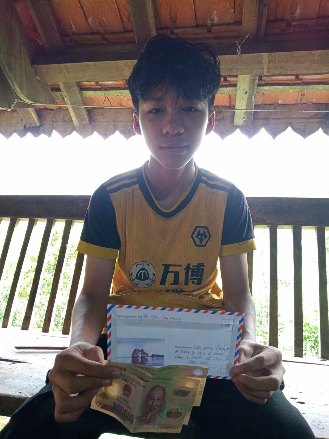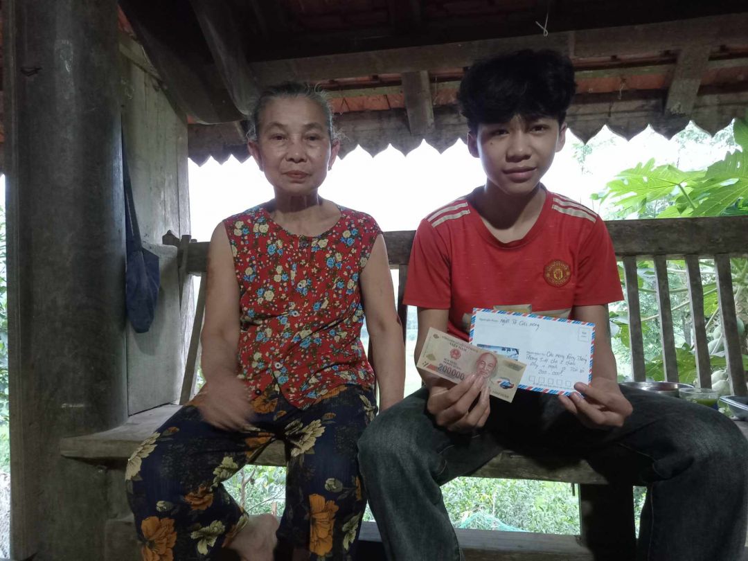 Chào cả nhà, Alexander xin cập nhật hình ảnh trao CMTX hoàn cảnh 2 cháu Duy, Con tháng 8,9 lần 2 số tiền 900.000 đồng. Qua lần trao lần 1 thăm hỏi được biết cháu Duy năm nay lên lớp 11, còn cháu Mạnh Con bắt đầu lên cấp 2 còn thiếu vở viết. Tụi con đã liên lạc với bác @kim bang và được bác hỗ trợ phần vở cho 2 cháu với kinh phí dự trù 500.000 đồng (25 quyển vở mỗi cháu giá 10.000 đồng/quyển). Tụi con đã trao kèm 200.000 đồng/tháng từ bác @kim bang chưa trao ạ. Cảm ơn cả nhà