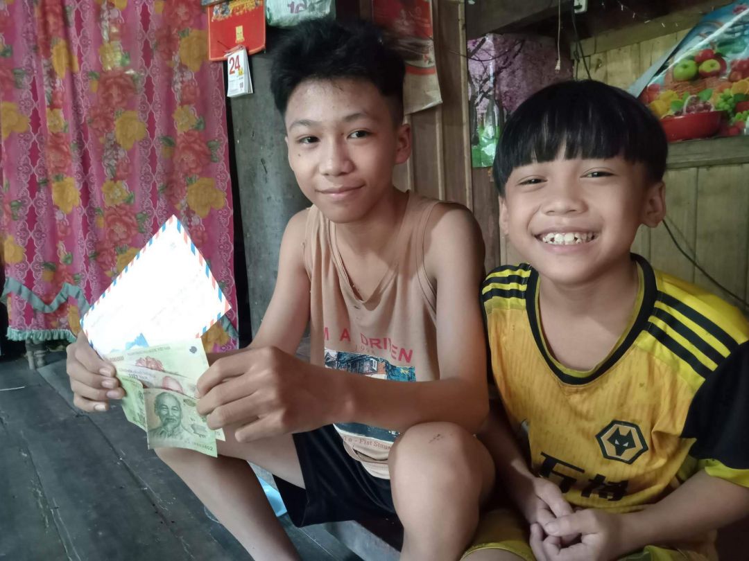 Chào cả nhà, Alexander xin cập nhật hình ảnh trao CMTX hoàn cảnh 2 cháu Duy,  Con tháng 12/2023. Số tiền 500.000 đồng. Cảm ơn cả nhà. Tụi con đã trao xong hoàn cảnh 2 cháu tháng 11- tháng 12. Mong cả nhà tiếp tục giúp đỡ hoàn cảnh 2 cháu ạ