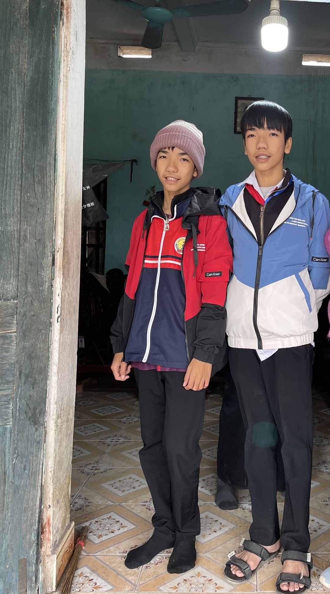 Chiều tối hôm qua em có đến nhà oba nội 2 cháu thăm oba và 2 cháu. 2 cháu được nhà hảo tâm tài trợ cuối tuần lên HN học tiếng anh. Hiện tại 2 cháu học cấp 3 tại trường THPT Bến Tắm - TP Chí Linh.