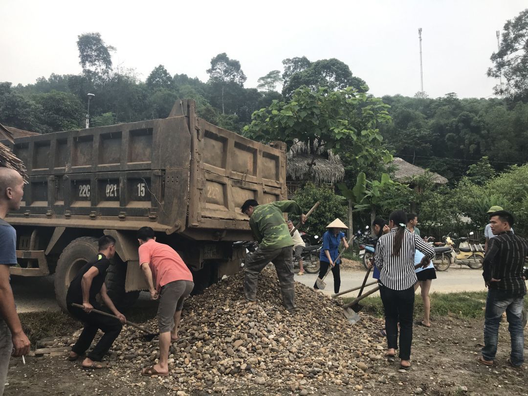 Sáng nay, nhà bà Huyệt hoàn thành công việc cúng động thổ, sự tham gia đào móng của hơn 60 phụ nữ và đoàn thanh niên. Ngoài ra, anh Khương, chủ doanh nghiệp khoáng sản trên Tuyên Quang tài trợ 20 khối sỏi san nền trị giá 6 triệu đồng.