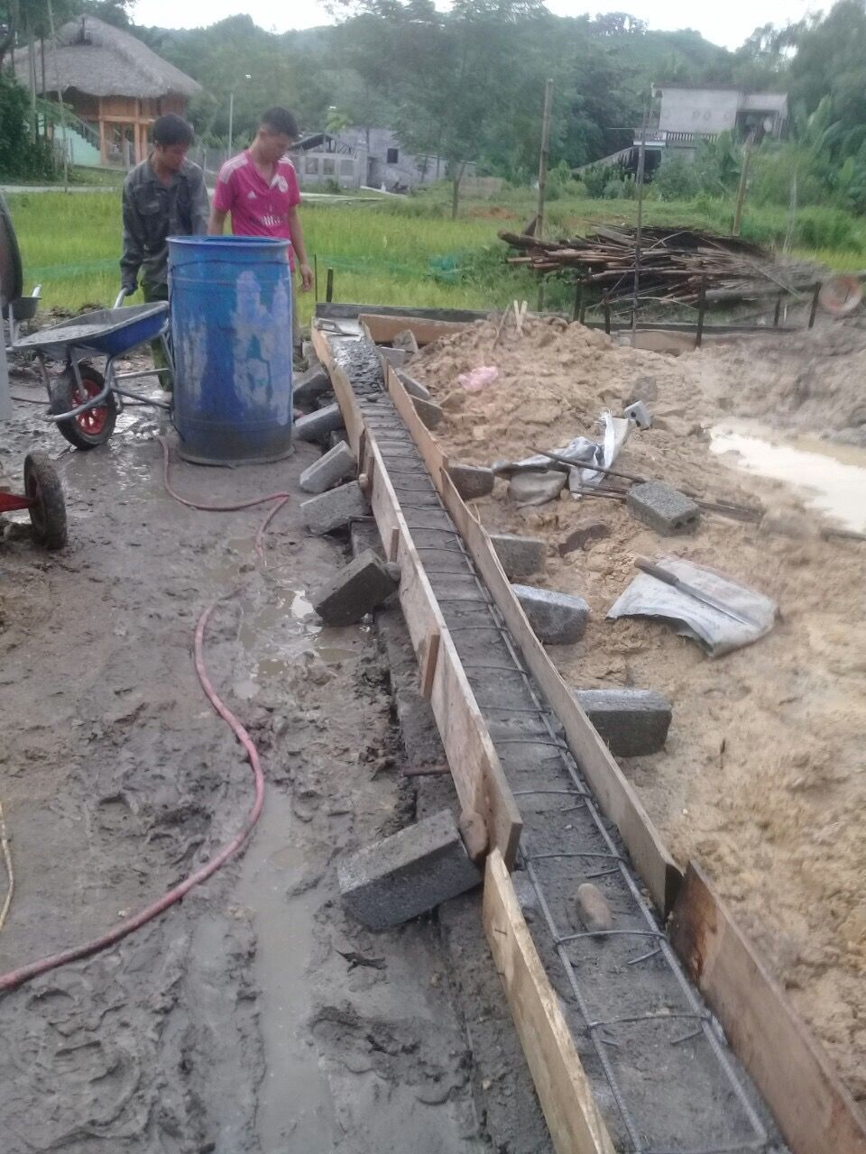 Báo cáo anh chị cho dù hôm nay trời mưa và theo dự báo thời tiết mấy hôm nữa ngoài bắc có 2 ngày trở lạnh, nhưng tiến độ ngôi nhà 34 hôm nay đã xong phần móng ạ.