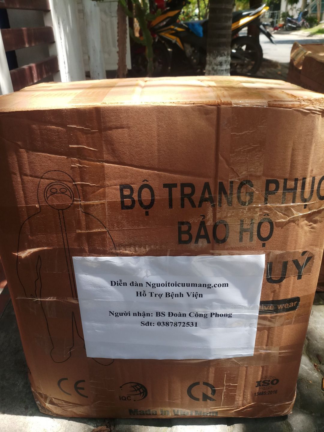 hiện tại bạn khôi đã gom đủ sớ lượng đồ bảo hộ, đóng thùng và gửi cho xe nhưng phía xe vận chuyễn họ gom đầy xe bán tải rồi lên một thể, vậy nên hàng sớm nhất là chiều hôm nay hoặc sáng mai mới lên đến bv, bận phong vẫn lại tiếp nhận và đưa vào tuyến trong bv