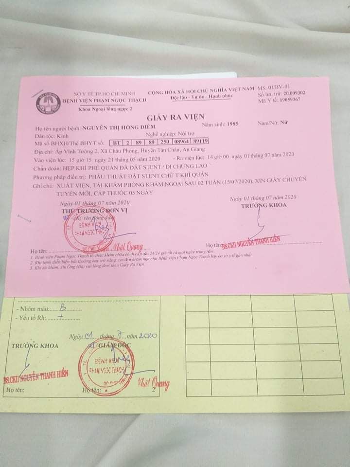Chị Nguyễn Thị Hồng Diễm bị bệnh hẹp khí quản, chị chữa trị từ tháng 4/2019 tới nay.