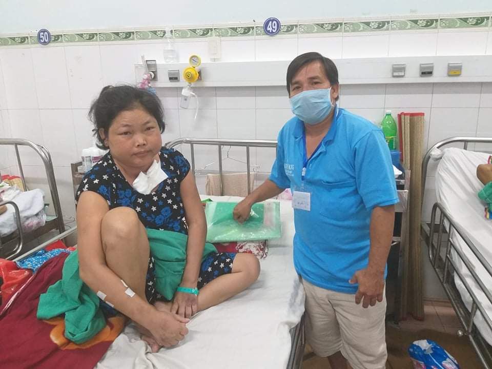 Anh chị không có con cái, căn nhà cũng do địa phương hỗ trợ xây cất, công việc chính của anh là sửa xe, vá xe tại nhà, gia đình cũng đã vay mượn tiền từ bà con, nhờ sự hỗ trợ từ nhiều nhà hảo tâm để giành lại sự sống cho chị, nhưng bệnh tình vẫn chưa thuyên giảm. Hiện giờ chị bệnh như vậy, anh phải lo cho chị nhiều hơn nên việc mưu sinh lại càng vất vả...