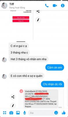 Em vừa nhận CMTX 3 tháng từ tháng 9, 10, 11/2020 đến mệ Thuyết.