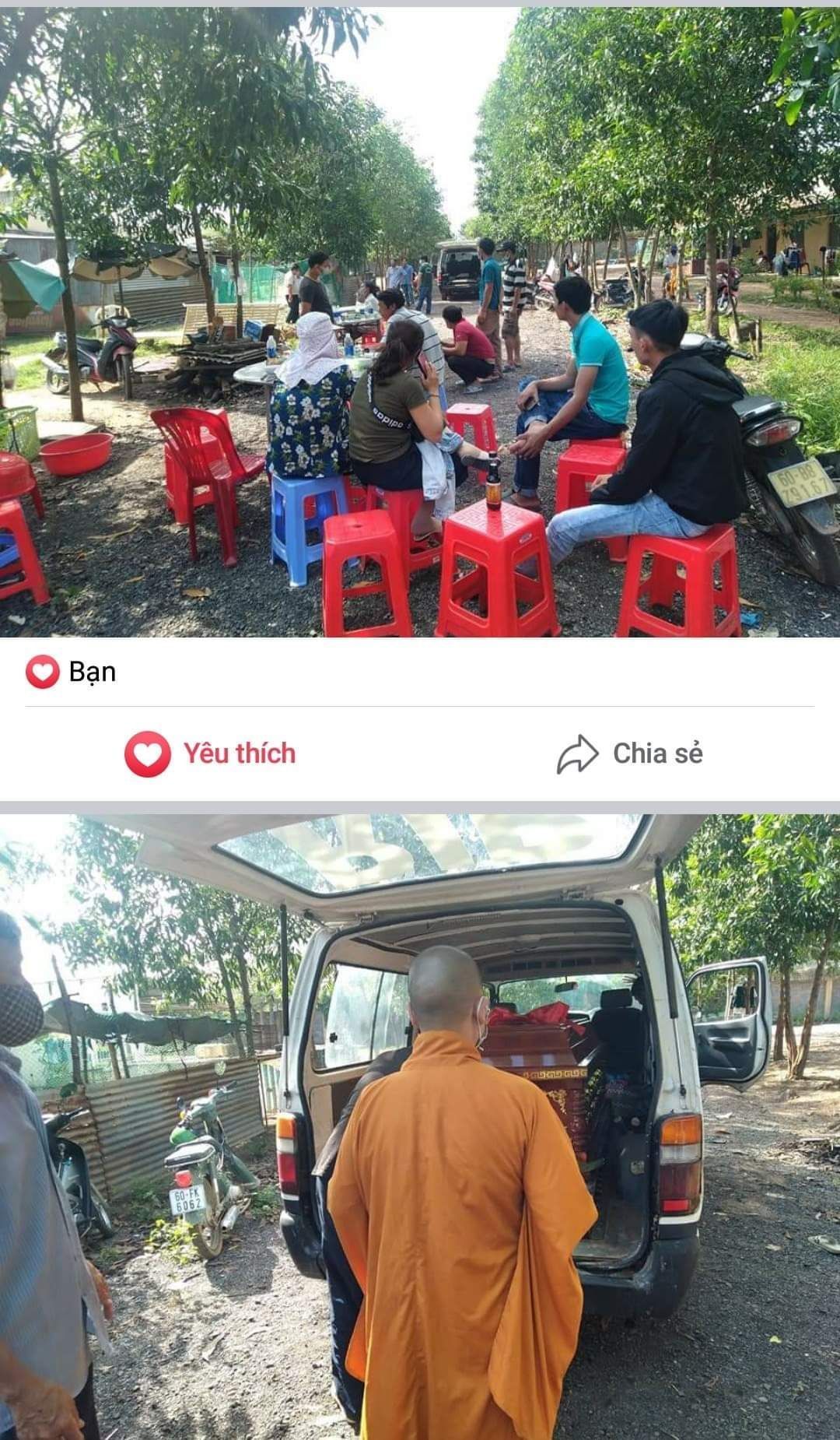 Sau khi được mọi người quan tâm giúp đỡ trong đó bà con hàng xóm gần đây, công ty Thanh Bình hỗ trợ 5 triệu đồng, nhóm từ thiện Trái tim yêu thương ở Trảng Bom hỗ trợ hòm ( đầu tiên chưa có ai hỗ trợ nên đưa hòm bên dịch vụ mai táng tới rồi nên bên dịch vụ mai tang đã đồng ý để luôn hòm ( quan tài ) ở lại và chuyển hòm từ thiện về dịch vụ mai táng ), vào sáng sớm chưa có ai giúp đỡ nên mình đã đề xuất hỗ trợ khoảng 5 đến 6 triệu nhưng đến trưa thì có thông tin cuối cùng nên mình đã trao đổi với bác banbe6x hỗ trợ 1 triệu tiền phúng điều từ diễn đàn nên mình đã tạm ứng 1 triệu trao cho cô Nhẫn. Về dịch vụ mai táng không tính tiền khuân quan tài mà nhờ hàng xóm hỗ trợ. Do làm khẩn trương nên cáo phó không được viết ra.