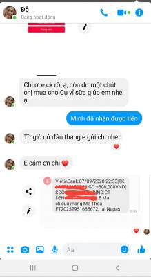 Em vừa nhận được hỗ trợ CMTX T9/2020 đến gia đình mệ Thỏa.