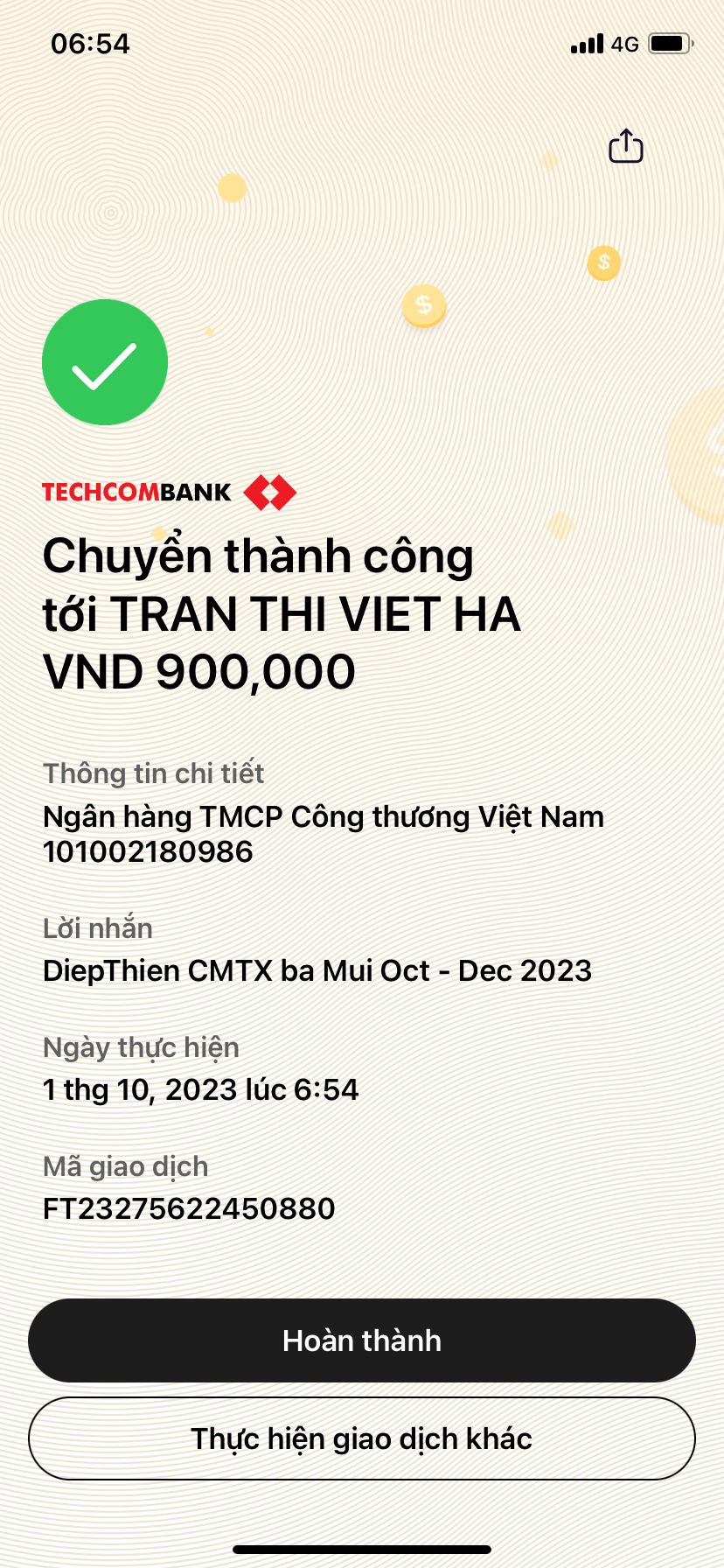 DiepThien xin gửi phần CMTX Q3.2023 tới bà Mùi. Nhờ Hà Trần thăm hỏi bà giùm nha.