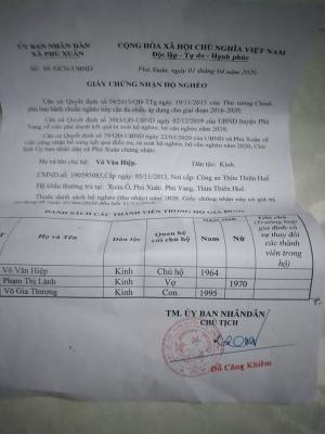Qua xác minh, nhóm Huế đề xuất CMTX đến gia đình chú Hiệp. Với: