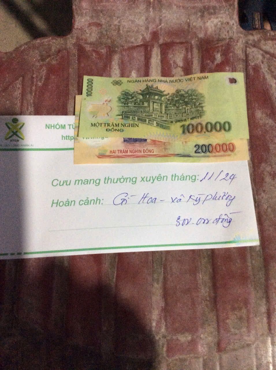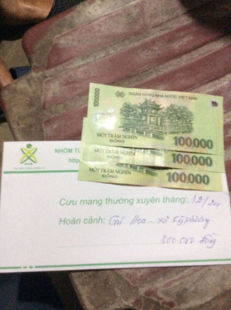Chào cả nhà !Trong khi chưa có sự chung tay giúp đỡ nào thì chúng ta tiếp tục xuất quỹ NTCM để CMTX chị Hoa 300,000₫/tháng từ tháng 1 đến tháng 3/2025 các bạn nhé.@trangvitgioi : Em xuất quỹ NTCM 900,000₫ chuyển tới bác @Lắng nghe lòng bạn để nhờ bác ấy trung chuyển tiền đến chị Hoa dùm nhé.
