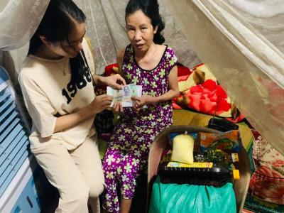 Thưong lắm mọi người ạ, em không biết làm sao Gì vẫn cười được, cuộc sống ri mà sao họ vẫn sống được, nhà không có gì ngoài 2 cái nồi và cái chỏng tre,đã vậy gì đi lại cũng rất khó khăn, không chồng, không con, không người thân.. khổ lắm các anh chị ạ
