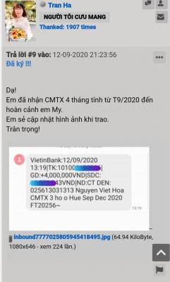 Trường hợp này đã được thành viên Hanoi giúp đỡ từ tháng 9/2920 và đã chuyển 4,000,000đ về cho Tran Ha (hình như Thaidzuy chuyển giúp Hanoi)
